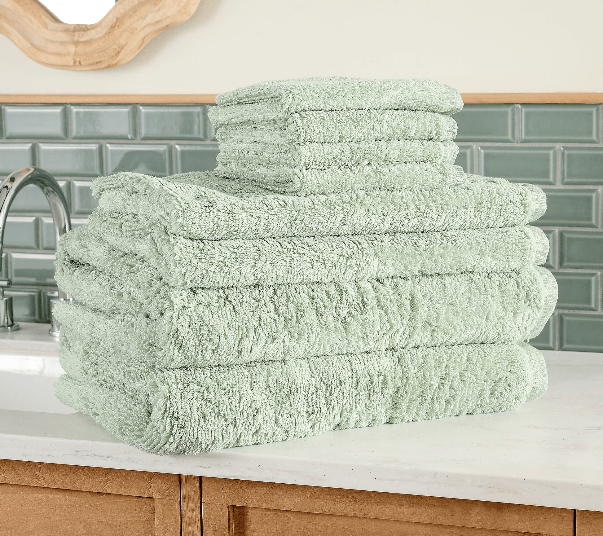 • Approximate measurements: Bath towels 32.5" x 63"; Hand towels 16" x 30"; Washcloths 13" x 13"